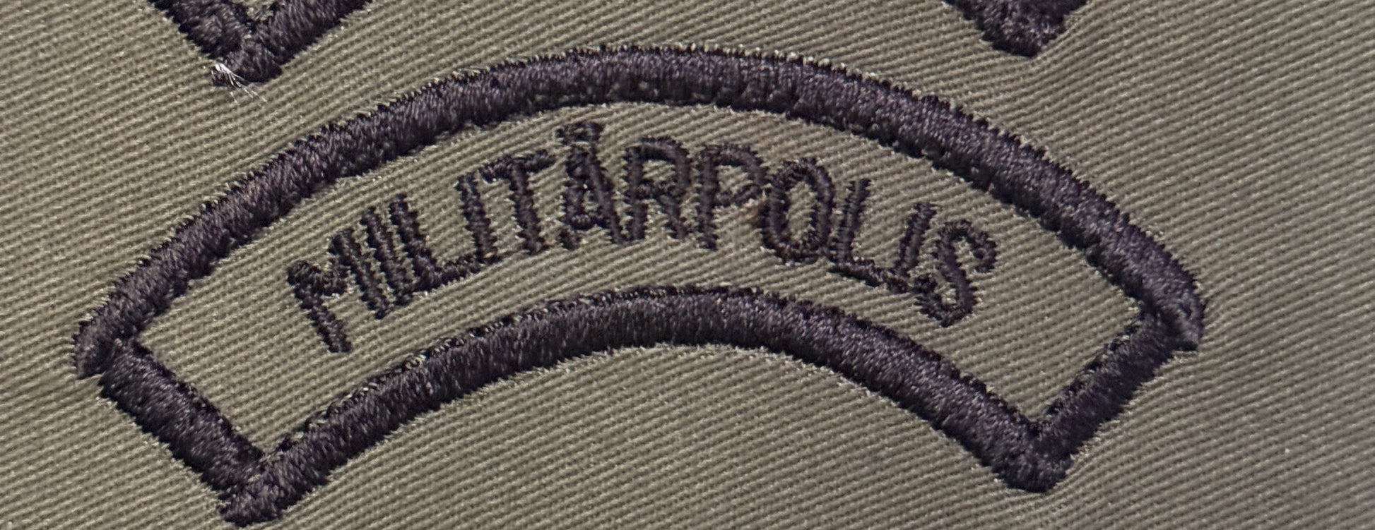 Broderad militär båge/patch i klassisk svensk stil. Tillverkad på slitstark twill med kardborrefäste på baksidan för enkel montering på uniform, väska eller utrustning.