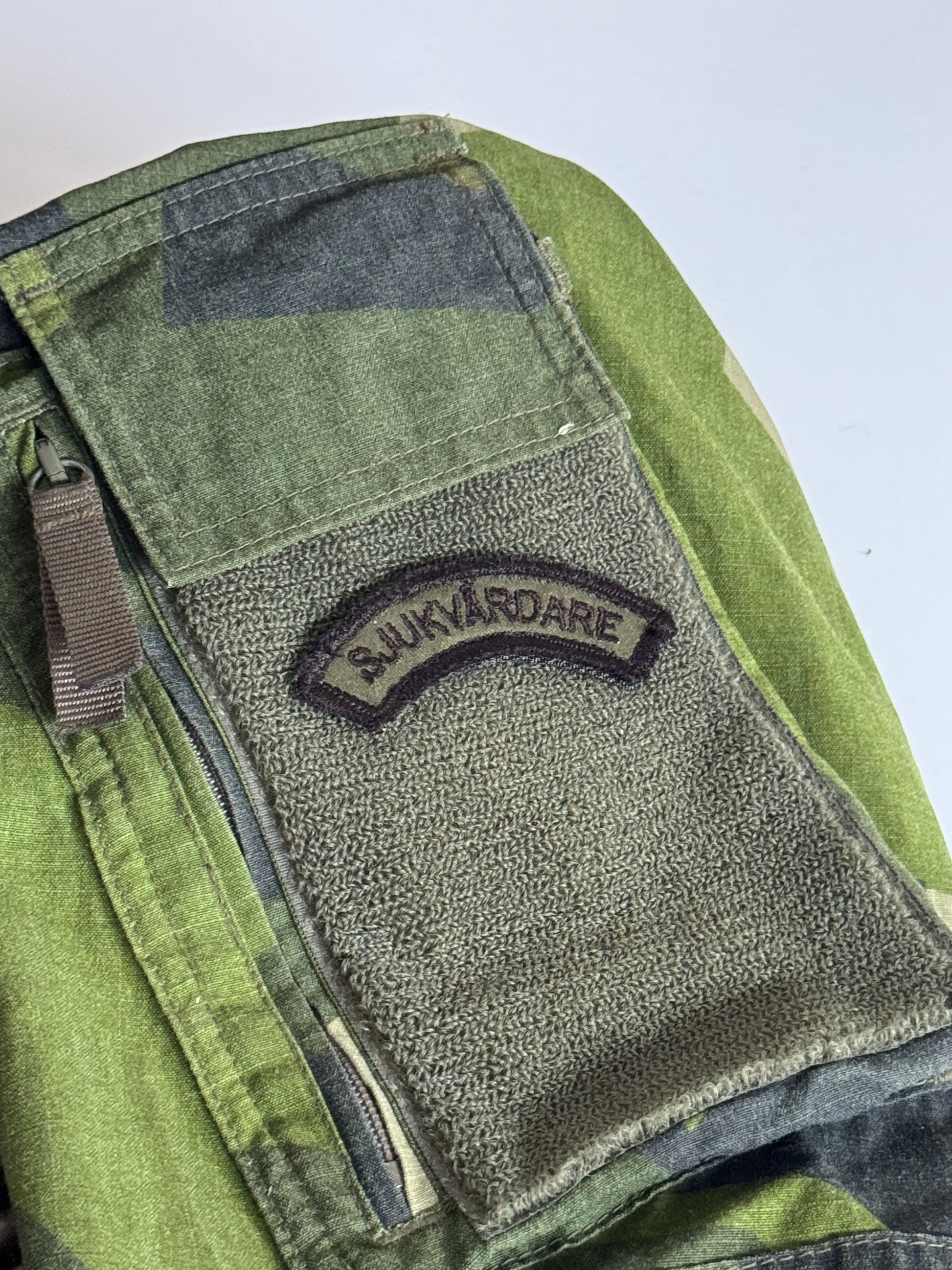 Broderad militär båge/patch i klassisk svensk stil. Tillverkad på slitstark twill med kardborrefäste på baksidan för enkel montering på uniform, väska eller utrustning.